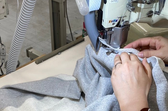 日本では和歌山県にしかない希少な吊編機という機械で作っています。服を通して上質さと高い技術力を感じられます。